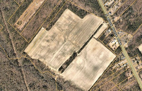 Una vista aérea de la tierra agrícola vacante de 172 acres en el 3043 South Black Horse Pike en Monroe Township, propiedad de Hexa Builders LLC, donde se ha propuesto un enorme proyecto de almacén. Municipio de Monroe