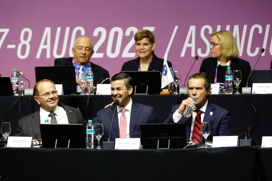 Ilic y el jefe de Estado de Paraguay, Santiago Peña, inauguraron la Asamblea reunida en la ciudad de Luque a propósito de la celebración desde el sábado de los Juegos Panamericanos Junior ASU2025.